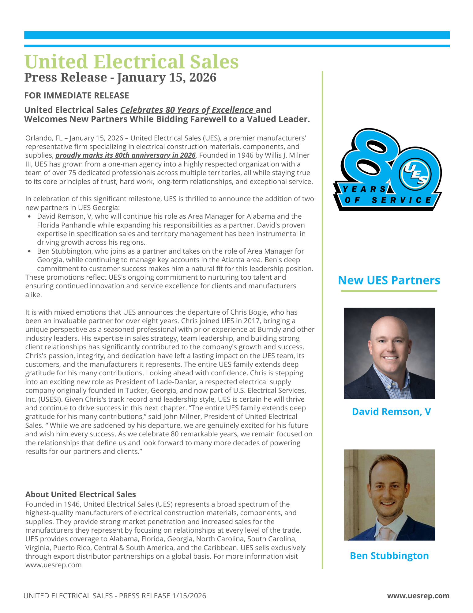 United Electrical Sales Celebrates 80 Years of Excellence and Welcomes New Partners While Bidding Farewell to a Valued Leader.